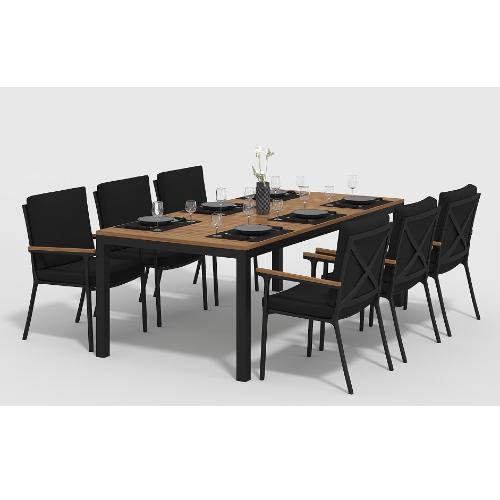 Цвет: каркас темно-серый карбон/ подушки черные/ столешница тик