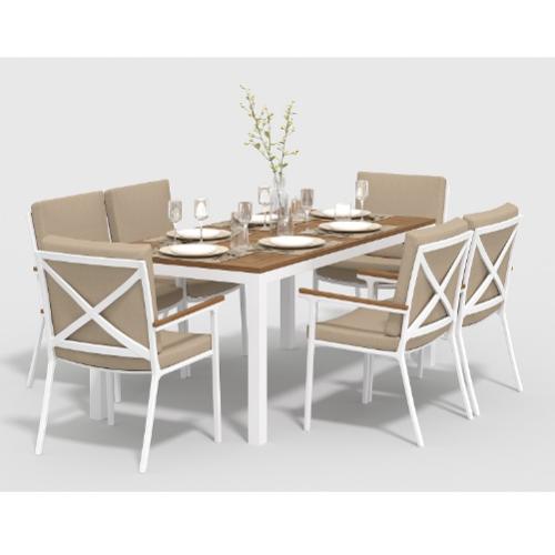 Цвет: каркас белый/подушки бежевые/столешница тик