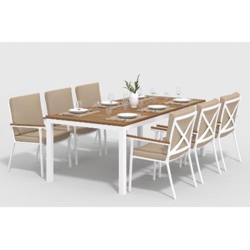 Цвет: каркас белый/подушки бежевые/столешница тик