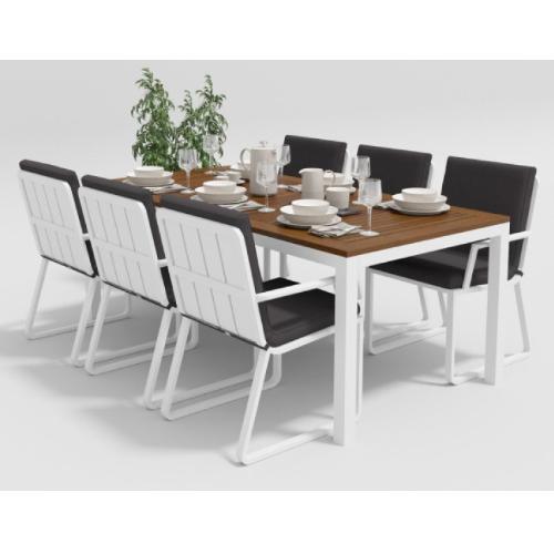 Цвет: каркас белый / подушки антрацит / столешница тик