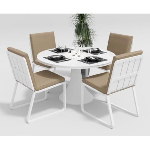Цвет: каркас белый / подушки бежевые / столешница белая глянцевая