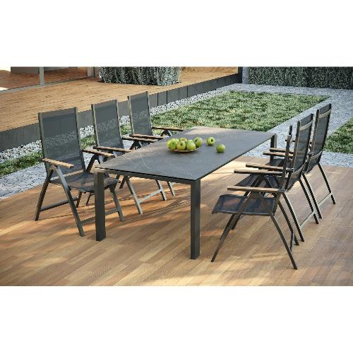 Обеденный комплект Brafritid Lyon-Andy 220A+6R антрацит/серый, алюминий/спеченный камень/тик
