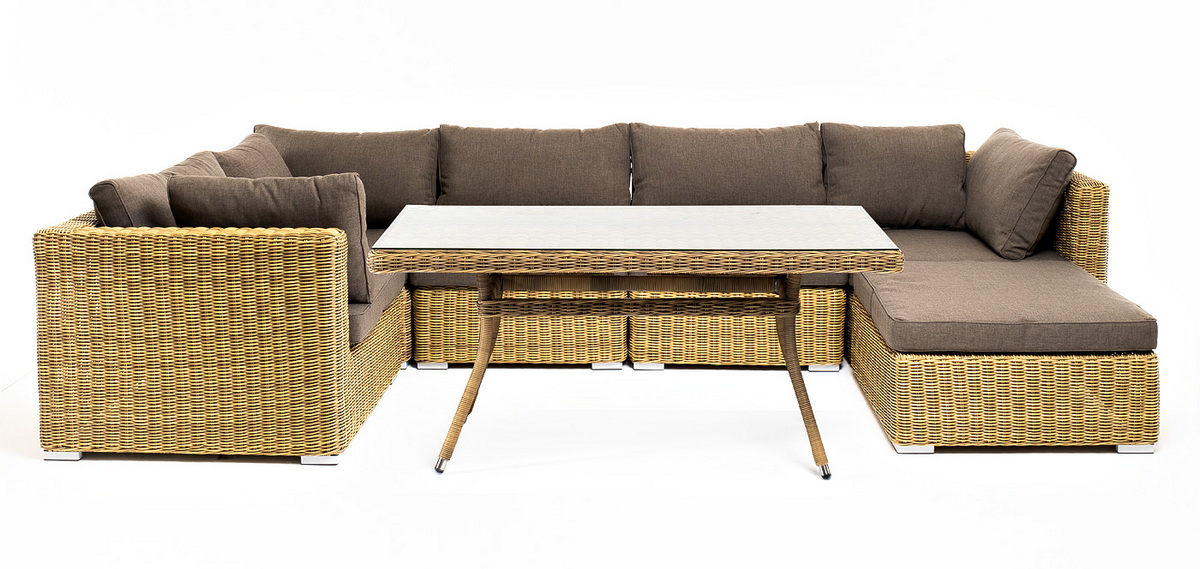 "Лунго" обеденная группа угловая из искусственного ротанга, цвет соломенный