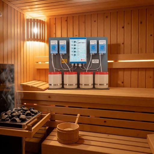 Инжектор ароматического вещества монтируется непосредственно в паропровод. Таким образом, ароматный пар наполняет парную, создавая особую атмосферу каждой процедуры, в зависимости от использованного запаха. Выбор аромата можно осуществлять с выносного пульта управления, который находится непосредственно в парной. Интенсивность дозирования устанавливается индивидуально для каждого аромата на регуляторе. Во время дозирования выбранного аромата клапан на других насосах закрыт.