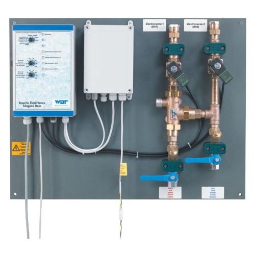 - Полная коммутация и предварительный монтаж на синей полипропиленовой пластине всех управляющих компонентов душа.