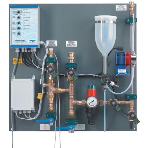 Полная коммутация и предварительный монтаж на синей полипропиленовой пластине всех управляющих компонентов душа.