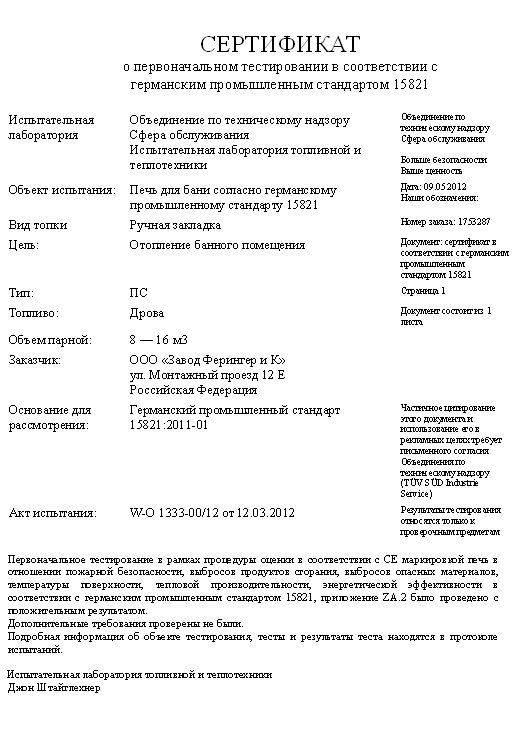 - Производитель Ферингер