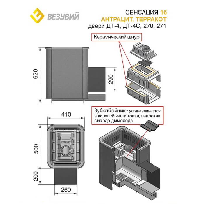 Инструкции, чертежи, документы - Банная чугунная печь Везувий Сенсация 16 Антрацит (271)