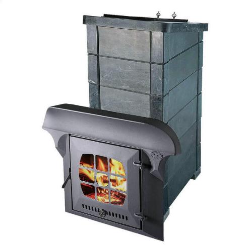 Банная печь Инжкомцентр ВВД Калита Экстрим РК в облицовке талькохлорит (чугунный портал с чугунной дверью)