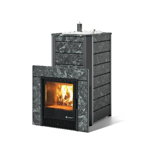 Банная печь ИзиСтим Ялта 40/2024 в облицовке из камня (сталь AISI 430) (пироксенит)