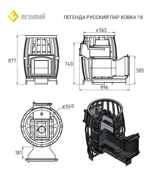Инструкции, чертежи, документы - Банная печь Везувий Легенда Русский пар Ковка 18 (240)