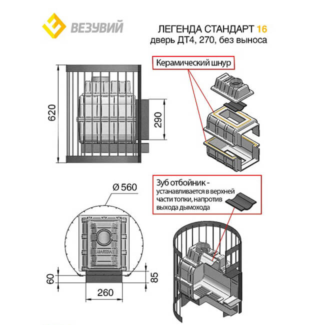 Инструкции, чертежи, документы - Чугунная печь Везувий Легенда Стандарт 16 (ДТ-4) б/в