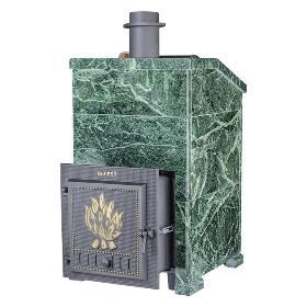 Поток Б, поступает через колосниковую решетку в нижнюю часть первой камеры. Поток В по отдельному воздушному каналу попадает во вторую камеру дожига расположенную под каменкой печи. Здесь он смешивается с огнем, вызывая активное горение пиролизных газов и резкий рост температуры. Это позволяет менее чем за 1 час нагреть массивную каменку с закладом до температур свыше 600С. Каменка находится внутри топки и нагревается прямым огнем со всех сторон. Огромный запас тепла в такой каменке делает печь «незаливаемой». На камни можно лить воду для получения мелкодисперсного и легкого пара в количествах, многократно превышающих стандартные нормы для парных помещений. Без такого пара невозможно создать микроклимат настоящей Русской Бани.