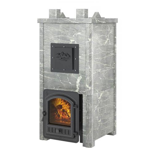 Печь для бани Эверест Легкий пар Профи в облицовке Талькохлорит, S-50 (каменка из чугуна)