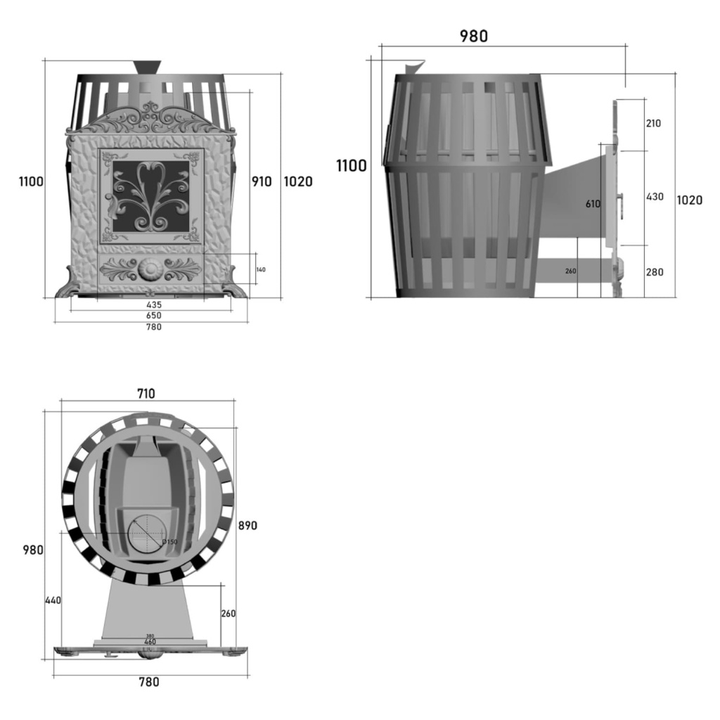 Инструкции, чертежи, документы - Печь-камин Березка Verona 50 закрытая каменка из нержавеющей стали