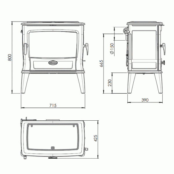 - Диаметр дымохода, мм 150