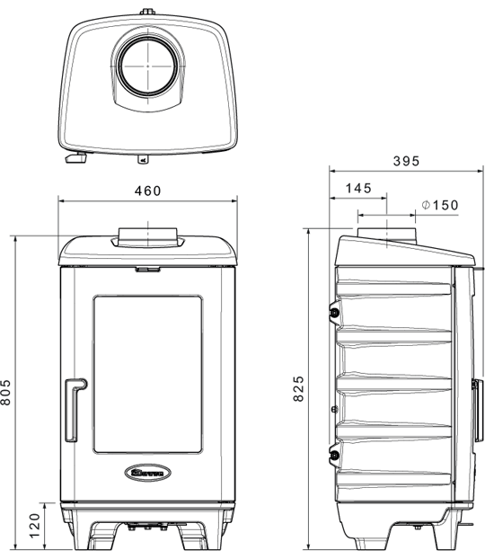 - Диаметр дымохода, мм 150
