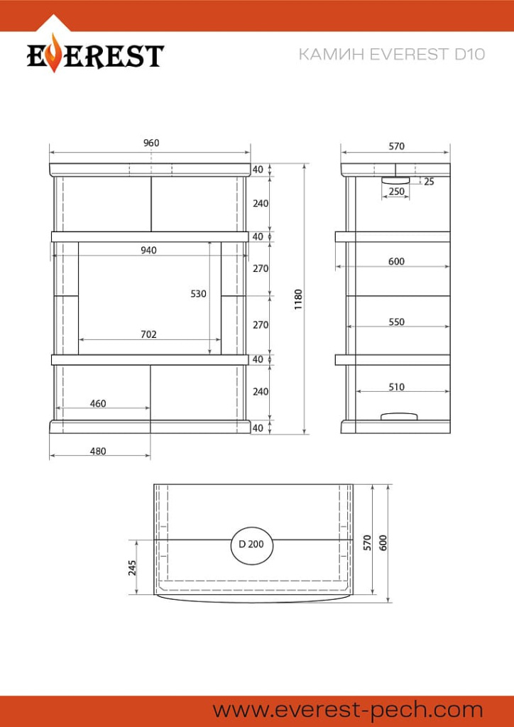 Инструкции, чертежи, документы - Камин Везувий Everest D10 Vyborg Н-1180 Амфиболит