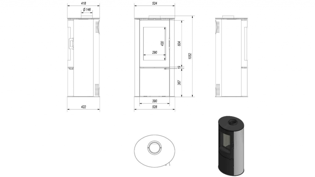 По умолчанию печь имеет верхнее подключение дымохода. При заднем подключении может понадобиться верхняя заглушка к печи. Приобретается отдельно.