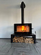 Имеется модификация с подиумом и встроенным дровником, что обеспечивает удобное хранение дров. Топочная камера облицована вермикулитом. Система вторичного дожига. Регулировка подачи воздуха и вторичного дожига осуществляется удобным рычагом. Дверь оснащена системой "чистое стекло".