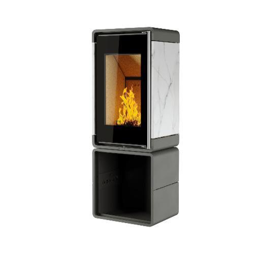Печь камин Астов Куб (ПК 4581) камень на дровнике (бьянка Карара)
