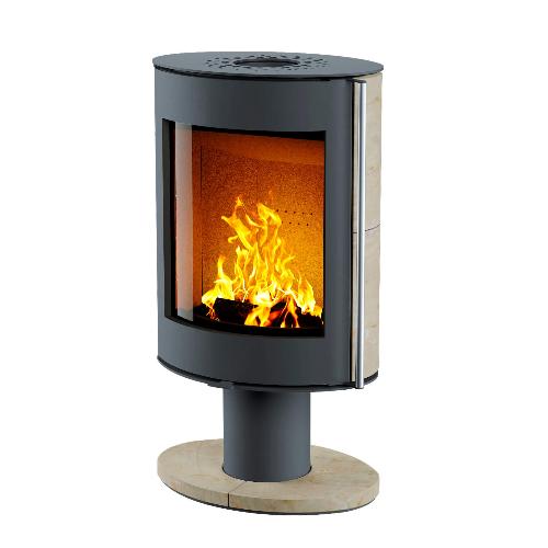 Печь камин Астов Oval (Овал), бока и основание ноги из камня (крема беж)