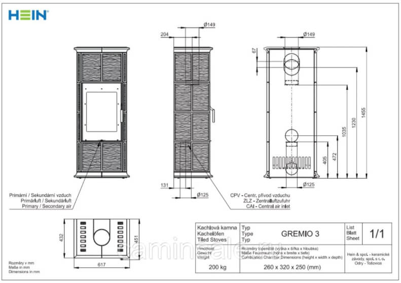 Инструкции, чертежи, документы - Печь-камин Hein Gremio 3 керамика 19301