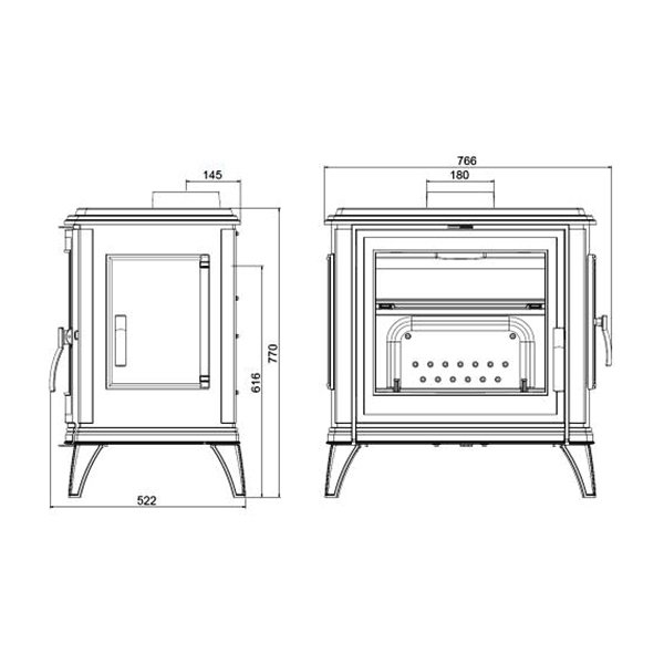 - Диаметр дымохода, мм 180