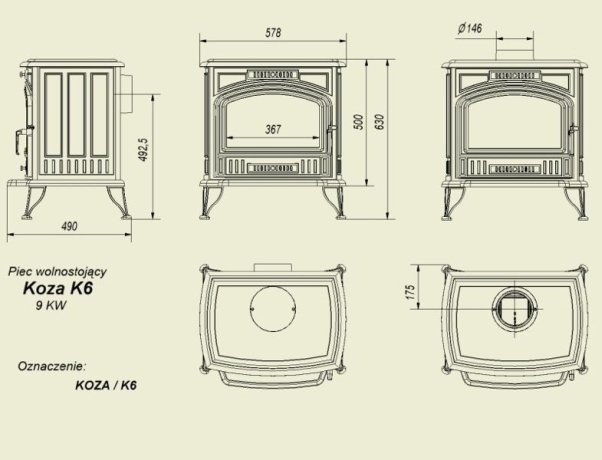 Инструкции, чертежи, документы - Печь камин Kratki Koza K6 (150 мм)