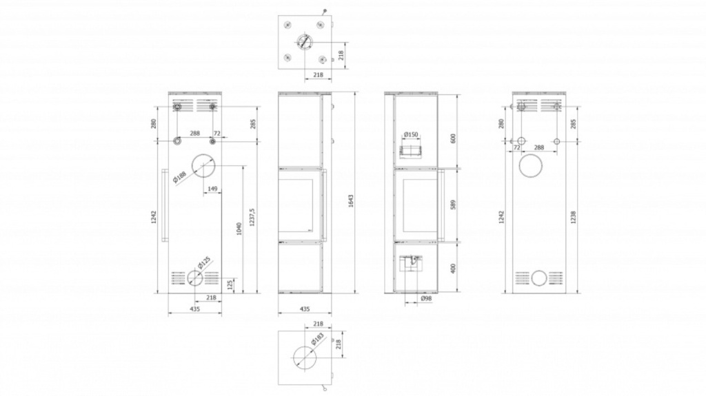 высота - 1643 мм, ширина - 435 мм, глубина - 435 мм.
