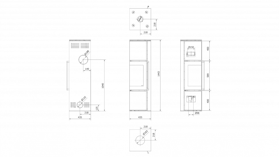 высота - 1443 мм, ширина - 435 мм, глубина - 435 мм.