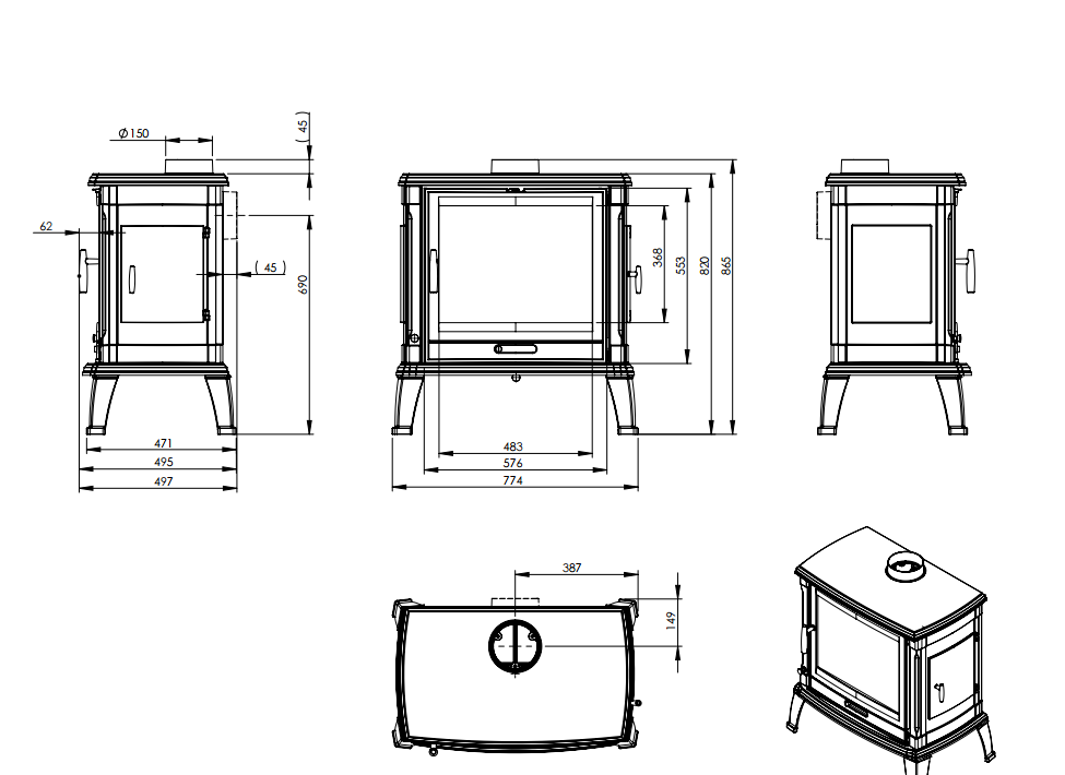 - Диаметр дымохода, мм 150