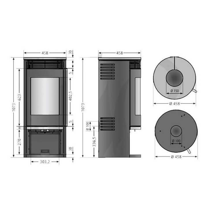 - Диаметр дымохода, мм 150