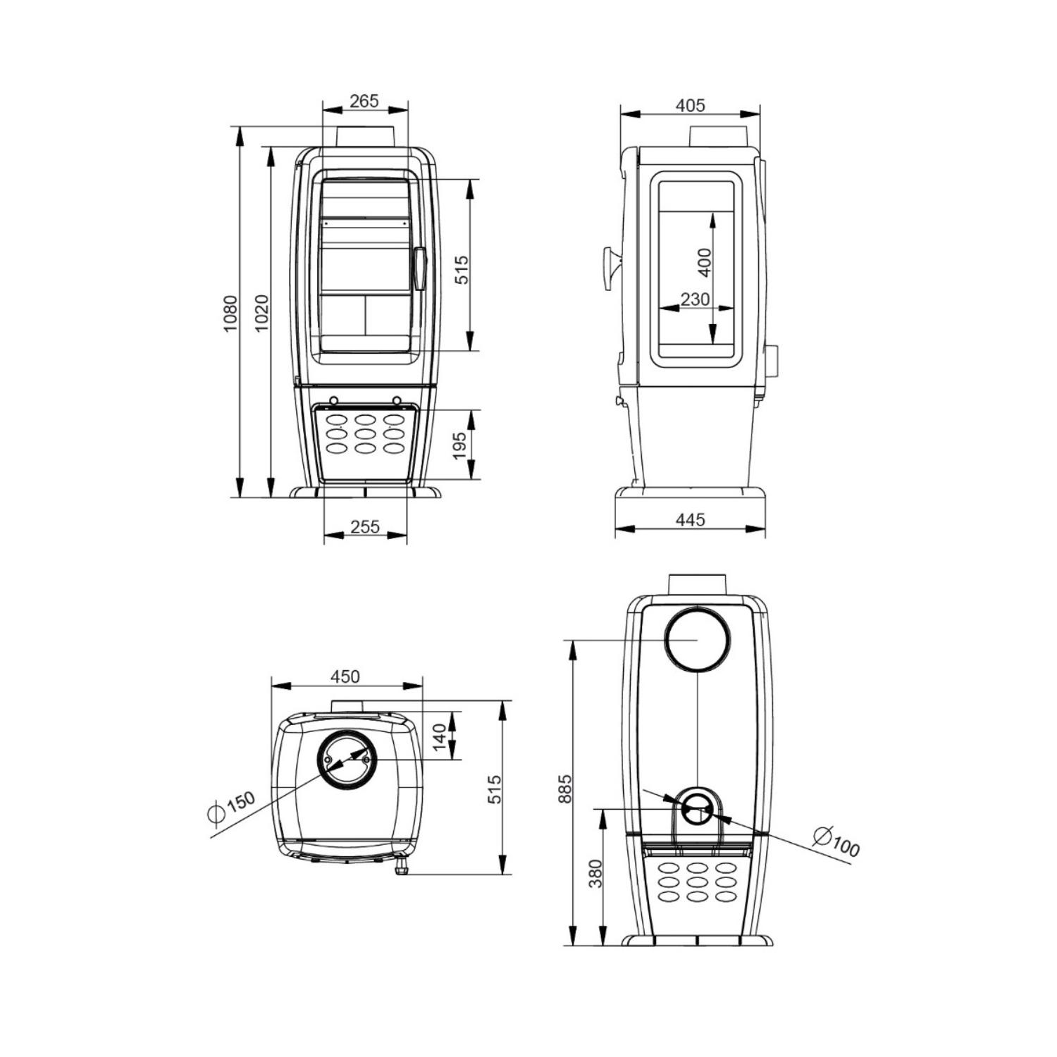 - Диаметр дымохода, мм 150