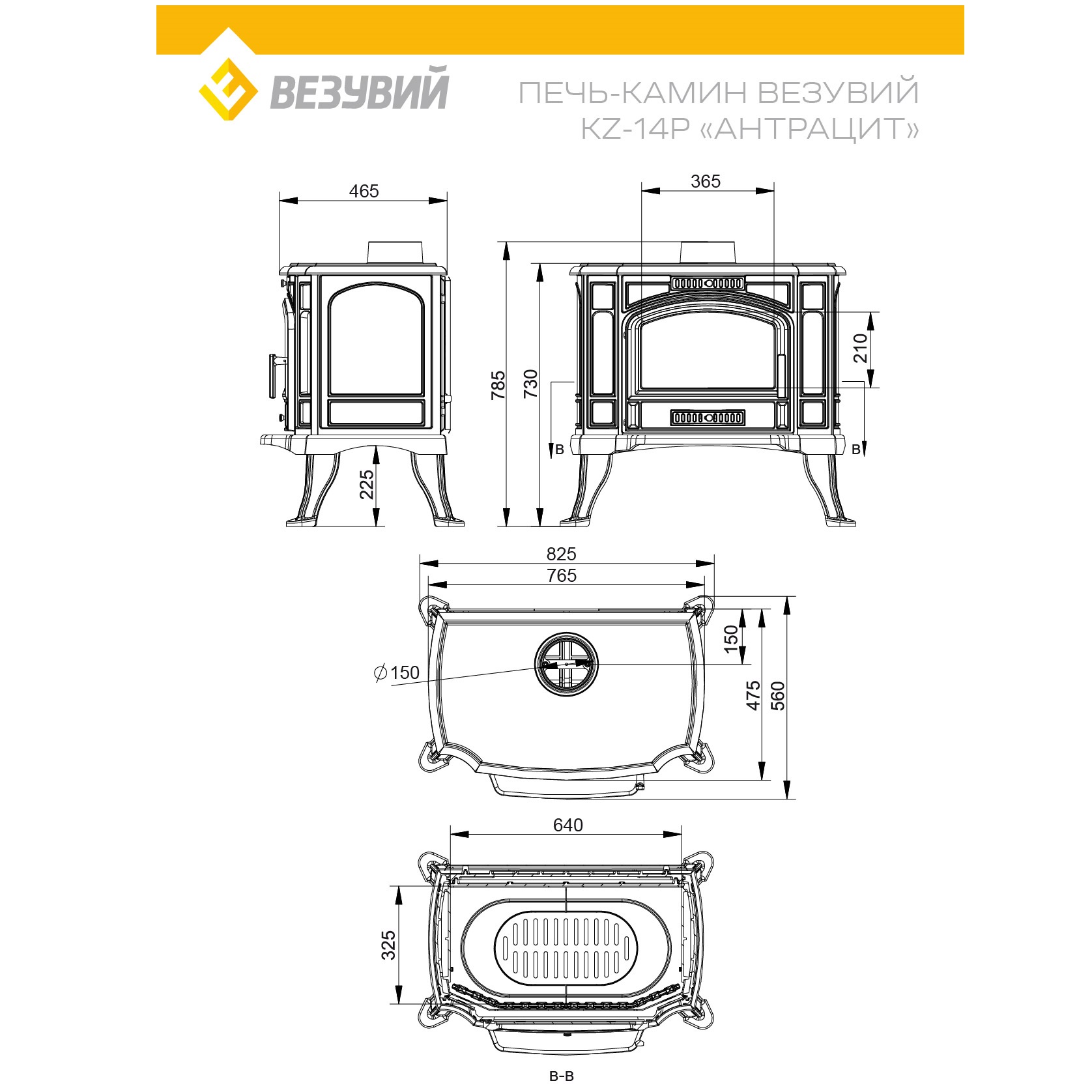 Инструкции, чертежи, документы - Печь камин Везувий KZ-14Р Антрацит