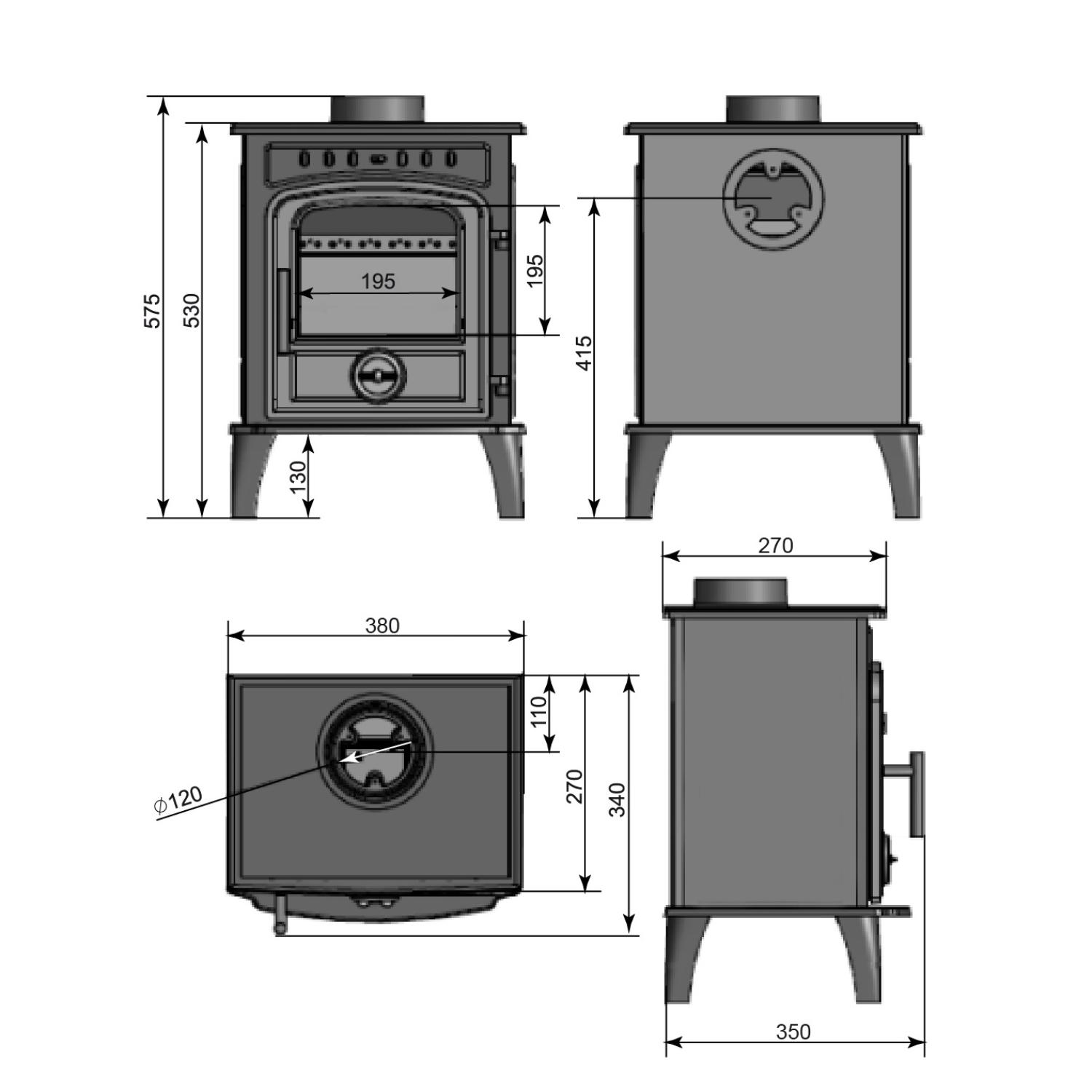 - Диаметр дымохода, мм 120
