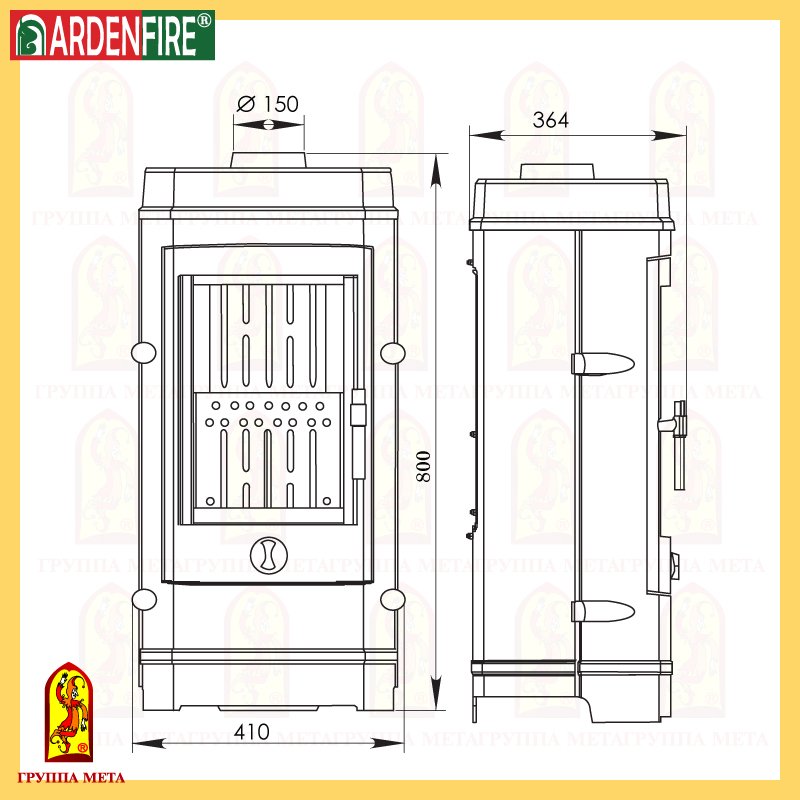 - Диаметр дымохода, мм 150