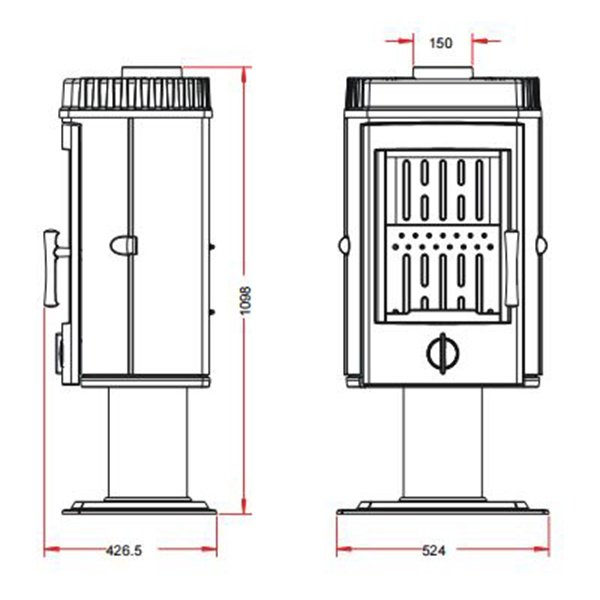 - Диаметр дымохода, мм 150