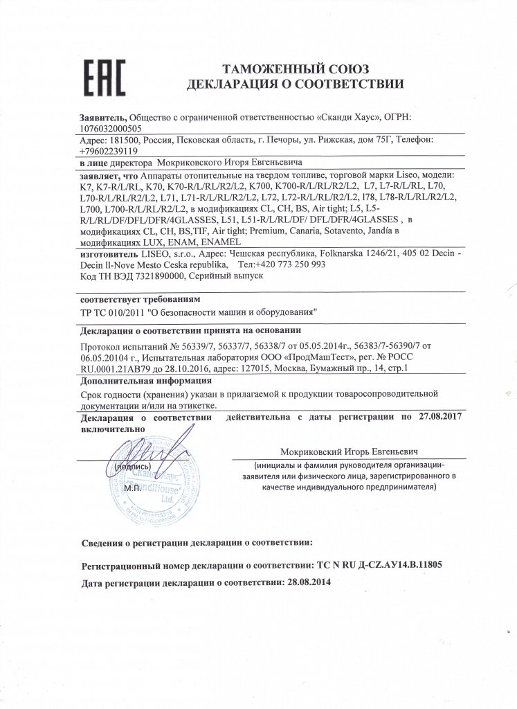 Инструкции, чертежи, документы - Печь камин Liseo L72 R+L