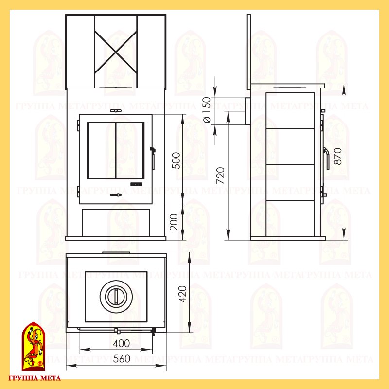 Инструкции, чертежи, документы - Печь-камин Мета Охта с плитой