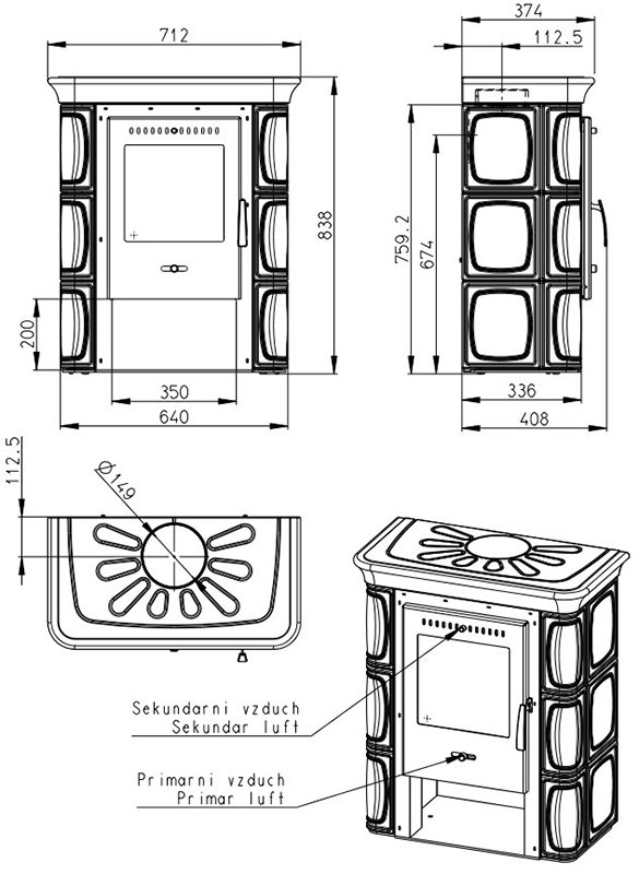 - Диаметр дымохода, мм 150