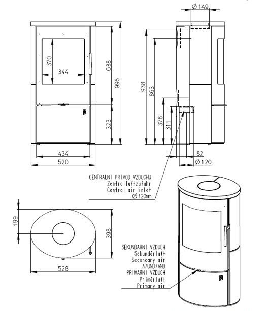 - Диаметр дымохода, мм 150