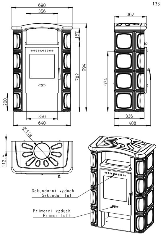 - Материал печи Сталь, Кафель\Керамика\Изразец, Изразец