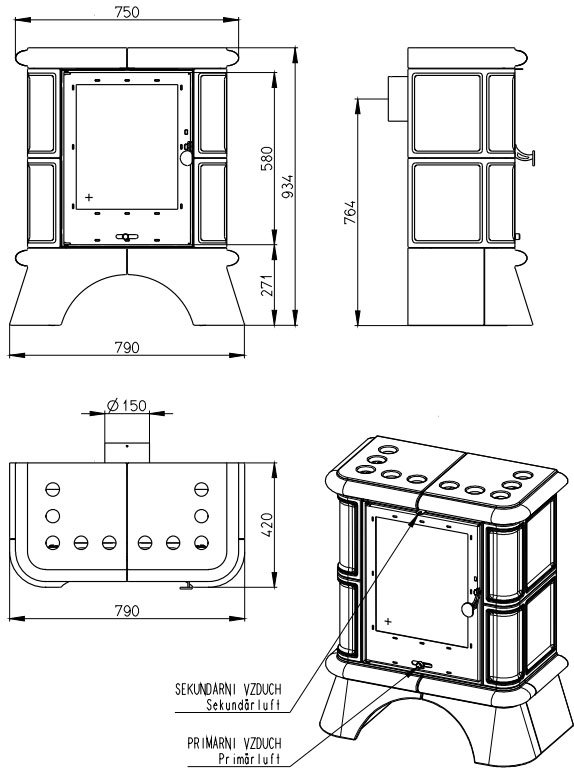 Инструкции, чертежи, документы - Печь камин Romotop Siena II керамика