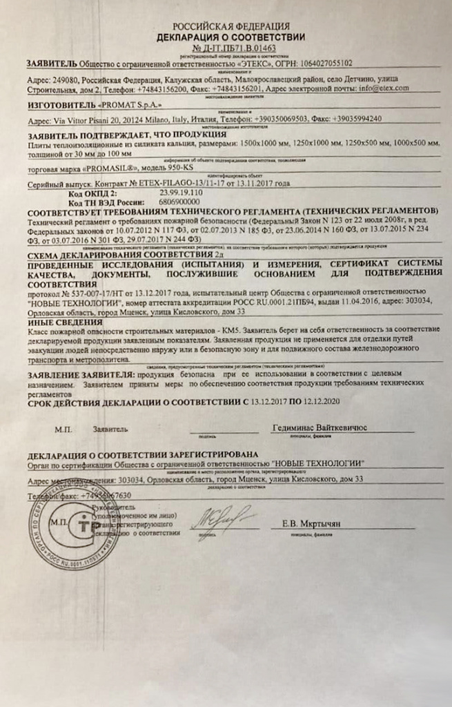 Инструкции, чертежи, документы - Плита Promasil (Промасил) 950 (1250х1000х30мм)