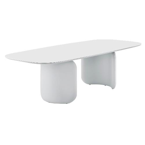 Стол Elinor с его мягкими и изогнутыми линиями образует изысканный, но в то же время современный образ. Основание состоит из двух фигурных элементов одинаковых размеров, изготовленных из жесткого пенополиуретана и обитых материалами различных категорий на выбор. Столешница квадратной формы поддерживается стальной конструкцией, которая скрывается поддоном округлой формы из качественного и надежного материла МДФ. Красивая и необычная модель превосходно украсит помещения сферы Contract, но так же отлично впишется в домашние интерьеры. Столы данной линейки имеют возможность модификации в части основания. Опоры можно расположить несколькими способами, что позволит получить разные вариации модели стола. Так, например, ассиметричное расположение придаст изделию некую легкость и в то же время устойчивость благодаря сохранению пропорций пространства.