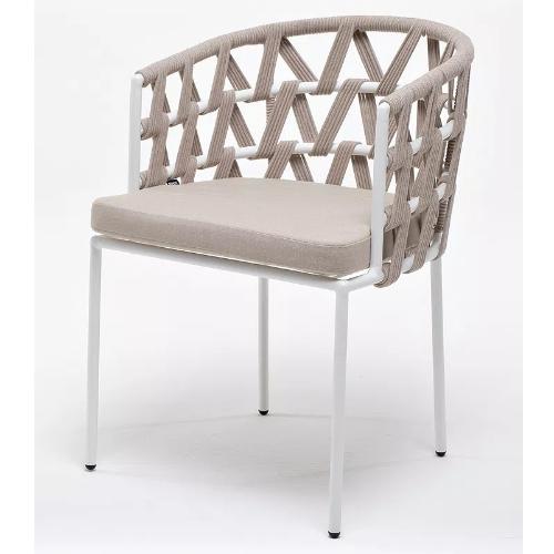 Стул плетеный из роупа 4SiS Диего, каркас из стали белый муар, роуп бежевый круглый, ткань бежевая 035