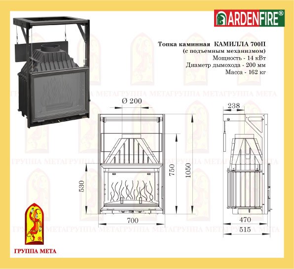 Инструкции, чертежи, документы - Каминная чугунная топка Мета Камилла 700 П