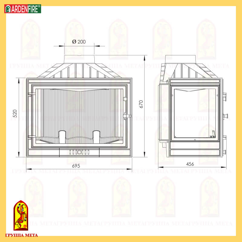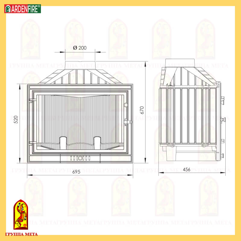 Чугунная топка Мета Промо 715 П/Л (стекло слева)