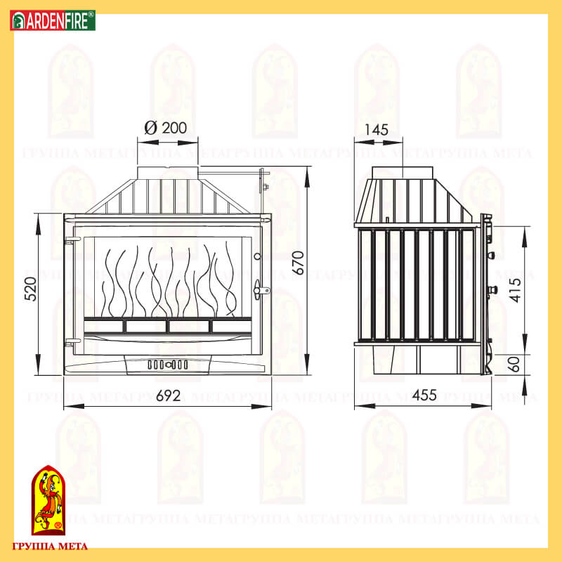 Каминная чугунная топка Мета Селеник 700МШ